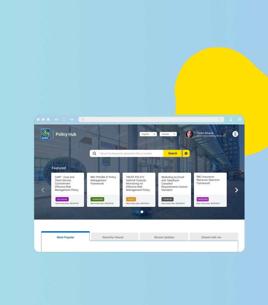 Hosts over 30,000 policy and procedure documents used by 80,000 RBC staff members across the bank.